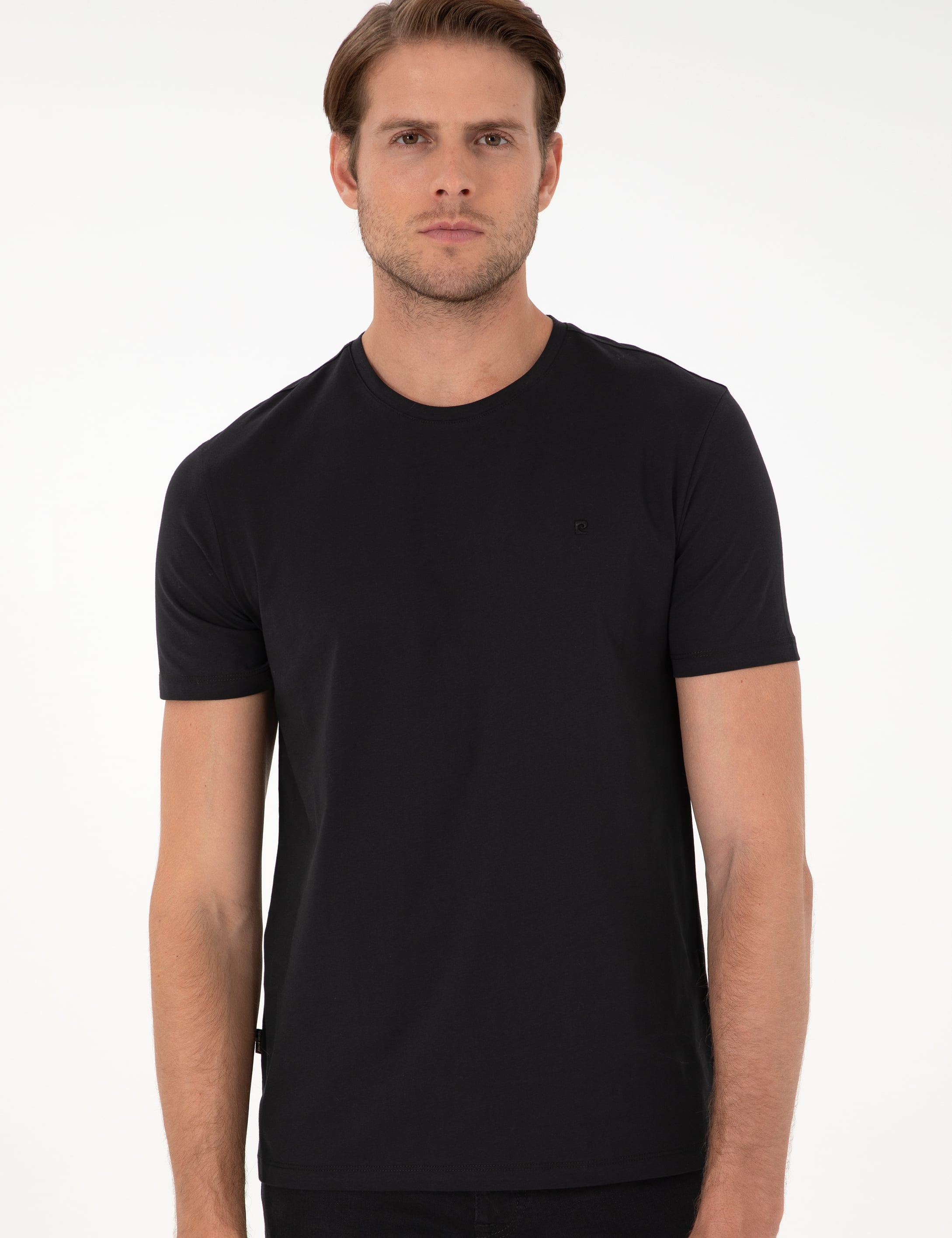 Siyah %100 Pamuk Slim Fit Bisiklet Yaka Basic Tişört