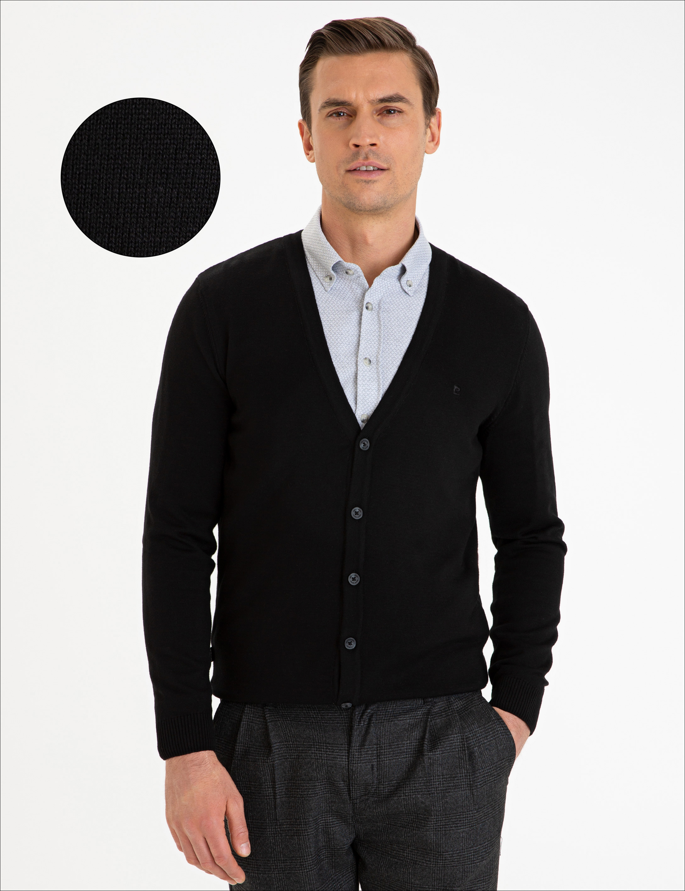 - Siyah Slim Fit Basic Düğmeli Triko Hırka