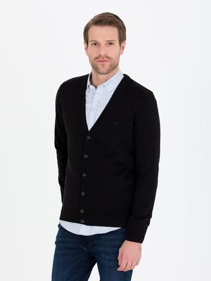- Siyah Slim Fit Basic Düğmeli Triko Hırka