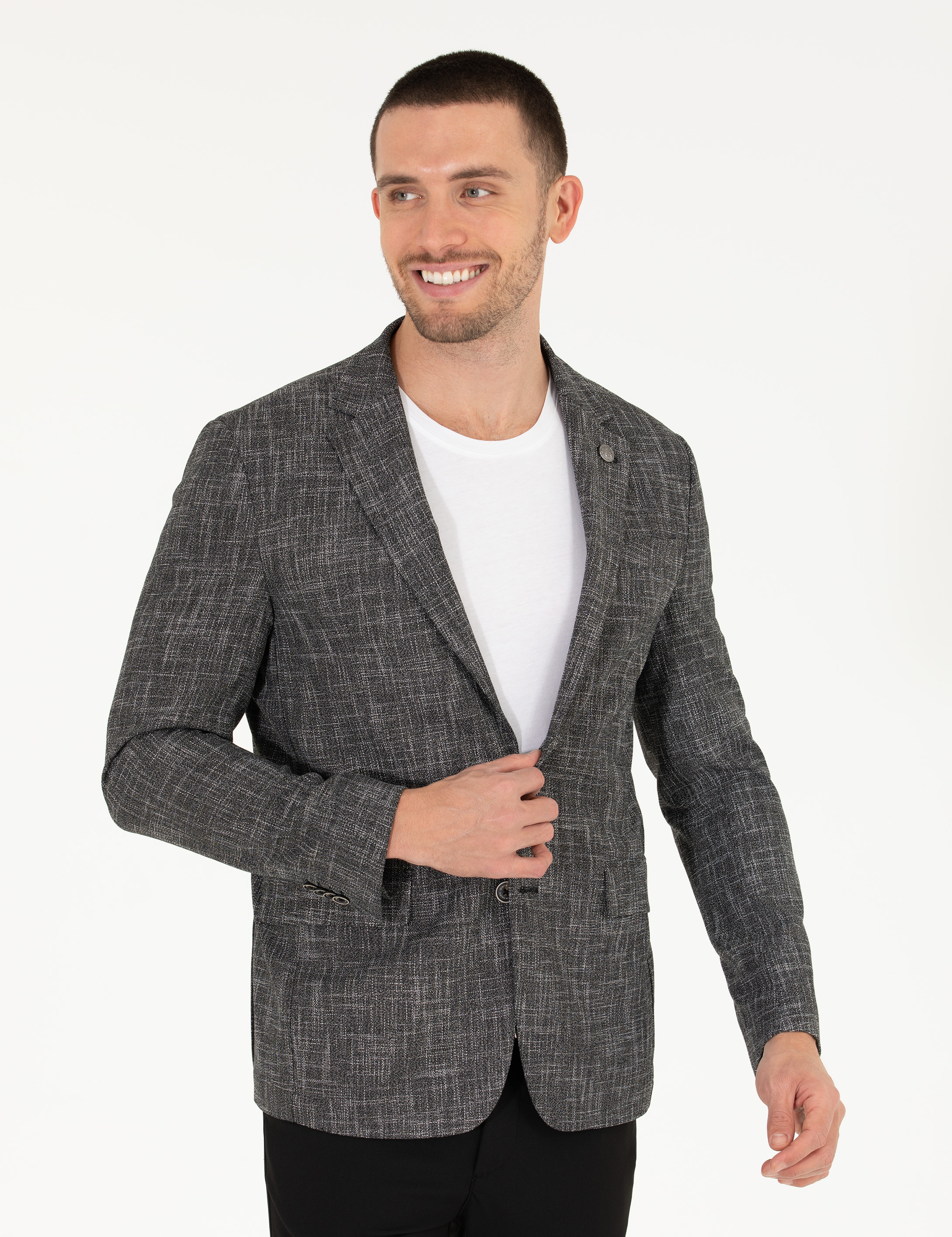 * Slim fit erkek ceket modelimiz mono yaka, mikro desen ve kapak klasik ceplere sahiptir.
