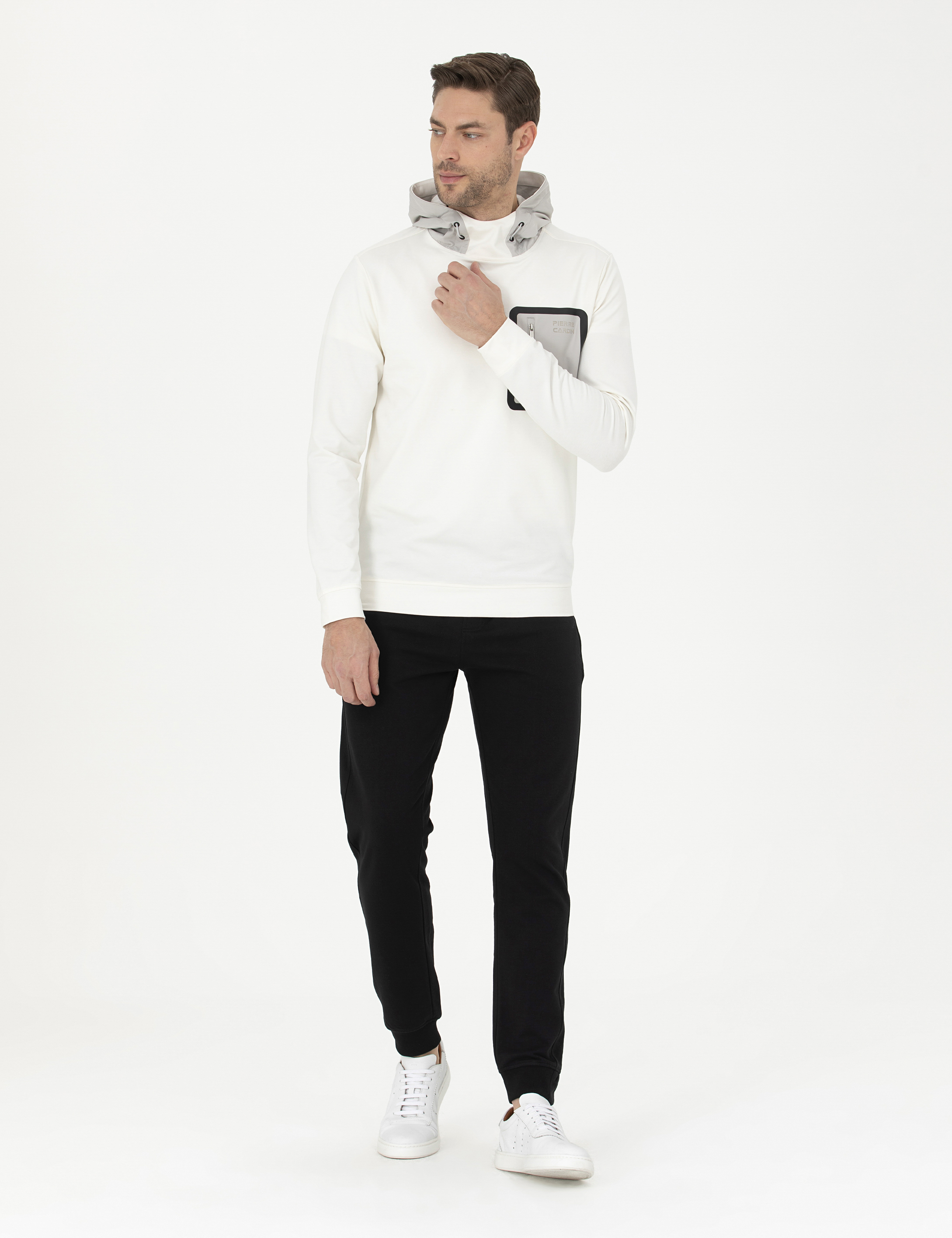 - Siyah Şardonlu 2 İplik Fermuarlı Cep %100 Pamuk Eşofman Altı