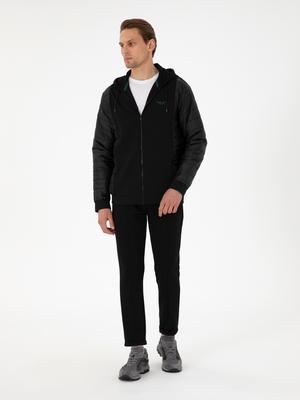 - Siyah Slim Fit Nervürlü Duble Paça Eşofman Altı