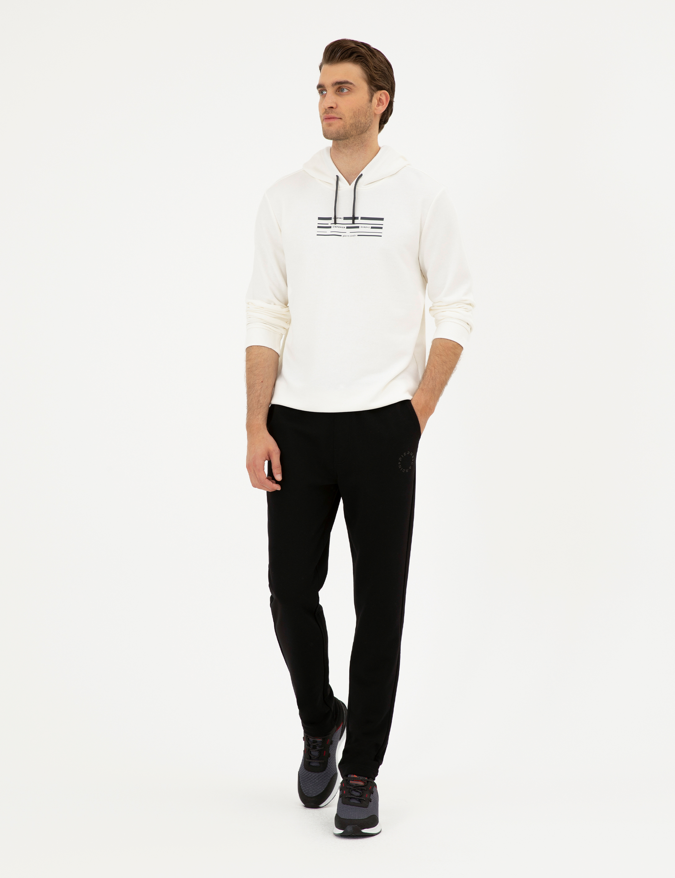 Gün boyunca rahatlığı ve tarzı bir arada yaşamak isteyenler için özel olarak hazırlanan siyah slim fit eşofman altı, esnek yapısı ve rahat kesimiyle öne çıkıyor. Yumuşak dokusu cildinize nazikçe temas ederken, hareket kabiliyetinizi sınırlamadan gün boyu konfor sunar. Belde yer alan ayarlanabilir bağcıklar, size mükemmel uyum sağlayacak şekilde ayarlanabilir ve şık görünümünü korur. Paçaların daralan formu, modern bir stil yaratırken spor ve günlük kullanımda da ideal bir tercih haline getirir. Siyahın her ortama ve stile uyum sağlayan klasik görünümü, eşofman altını gardırobunuzun vazgeçilmezlerinden biri yapar.