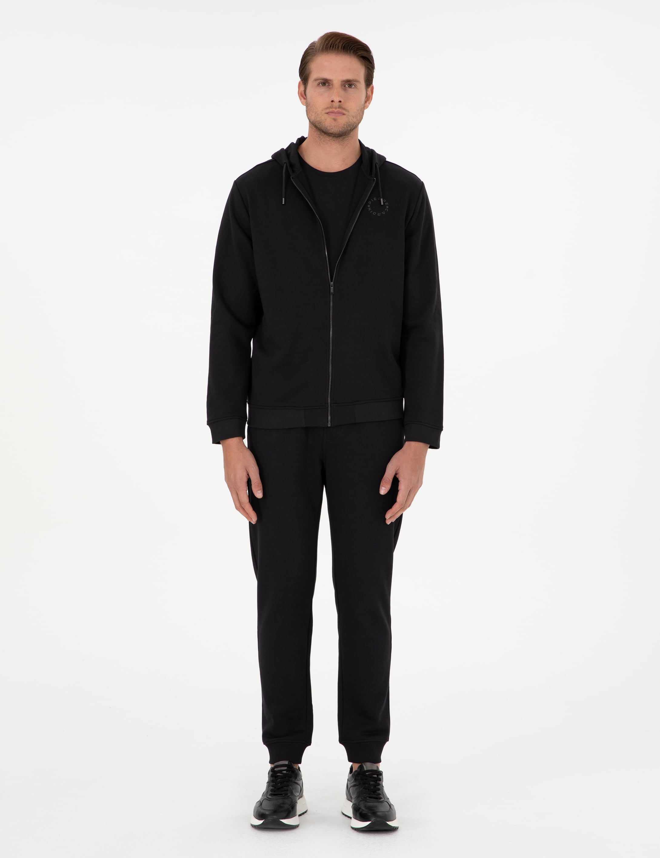 Siyah Slim Fit 3 İplik Paçası Lastikli Eşofman Altı