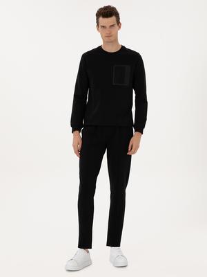 - Siyah Slim Fit Nervürlü Düz Paça Eşofman Altı