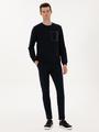 Siyah slim fit örme pantolon, minimal tasarımıyla sportif bir şıklık sunar. Düz formu ve nervür detaylarıyla klasik bir siluet oluştururken, slim kesimi vücuda dengeli bir oturuş kazandırır. Yandan iki cep ve arkadaki tek cep detayıyla işlevsellik ön plandadır. 2 iplik kumaş dokusu, pantolona dayanıklılık ve esneklik kazandırır. Online’a özel olarak sunulan bu parça, rahatlığı zarif bir duruşla birleştiren şehir stilinin vazgeçilmez tamamlayıcısıdır.