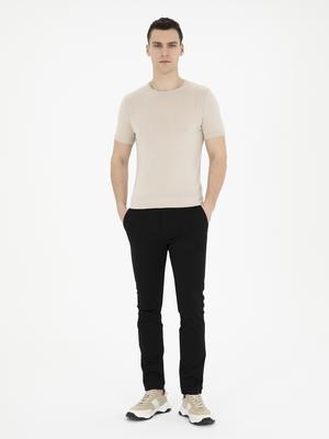 Siyah Armürlü Slim Fit Kanvas Pantolon