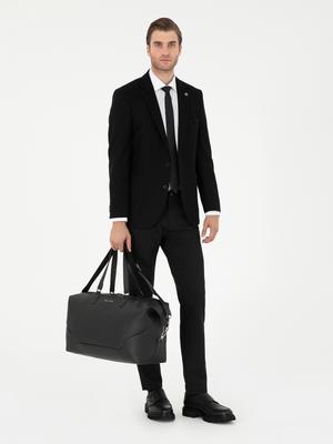 Siyah Slim Fit Çizgili Kanvas Pantolon
