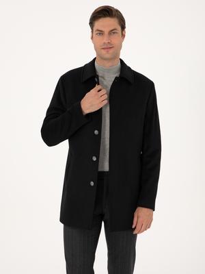 Siyah Slim Fit Kaşe Kaban