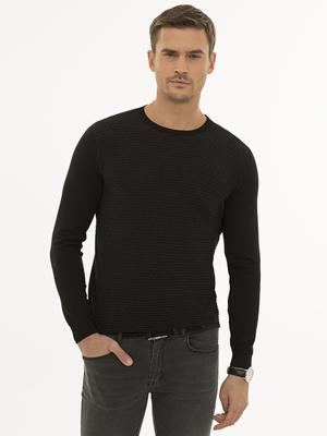 - Siyah Slim Fit Bisiklet Yaka Triko Kazak