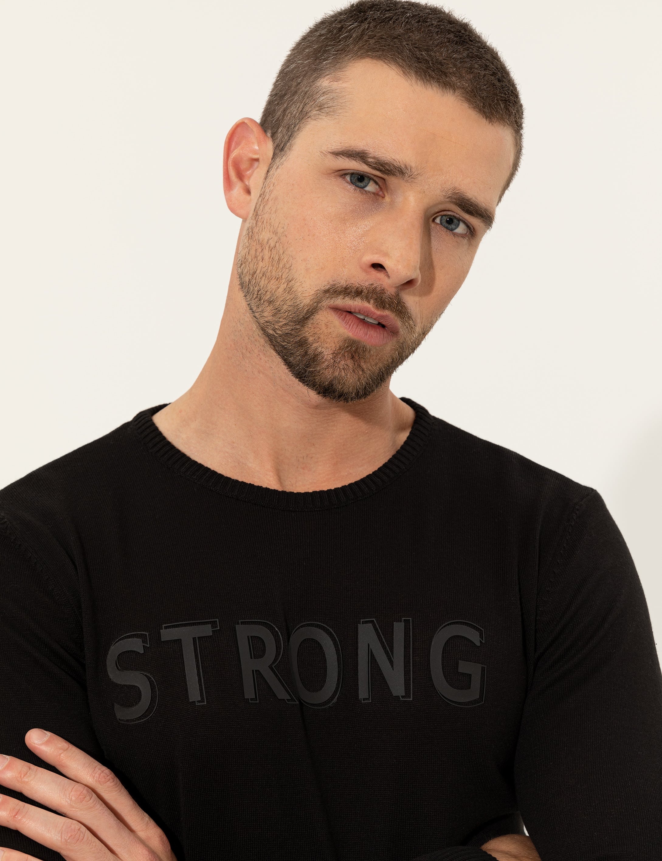 - Siyah Slim Fit Bisiklet Yaka Triko Kazak