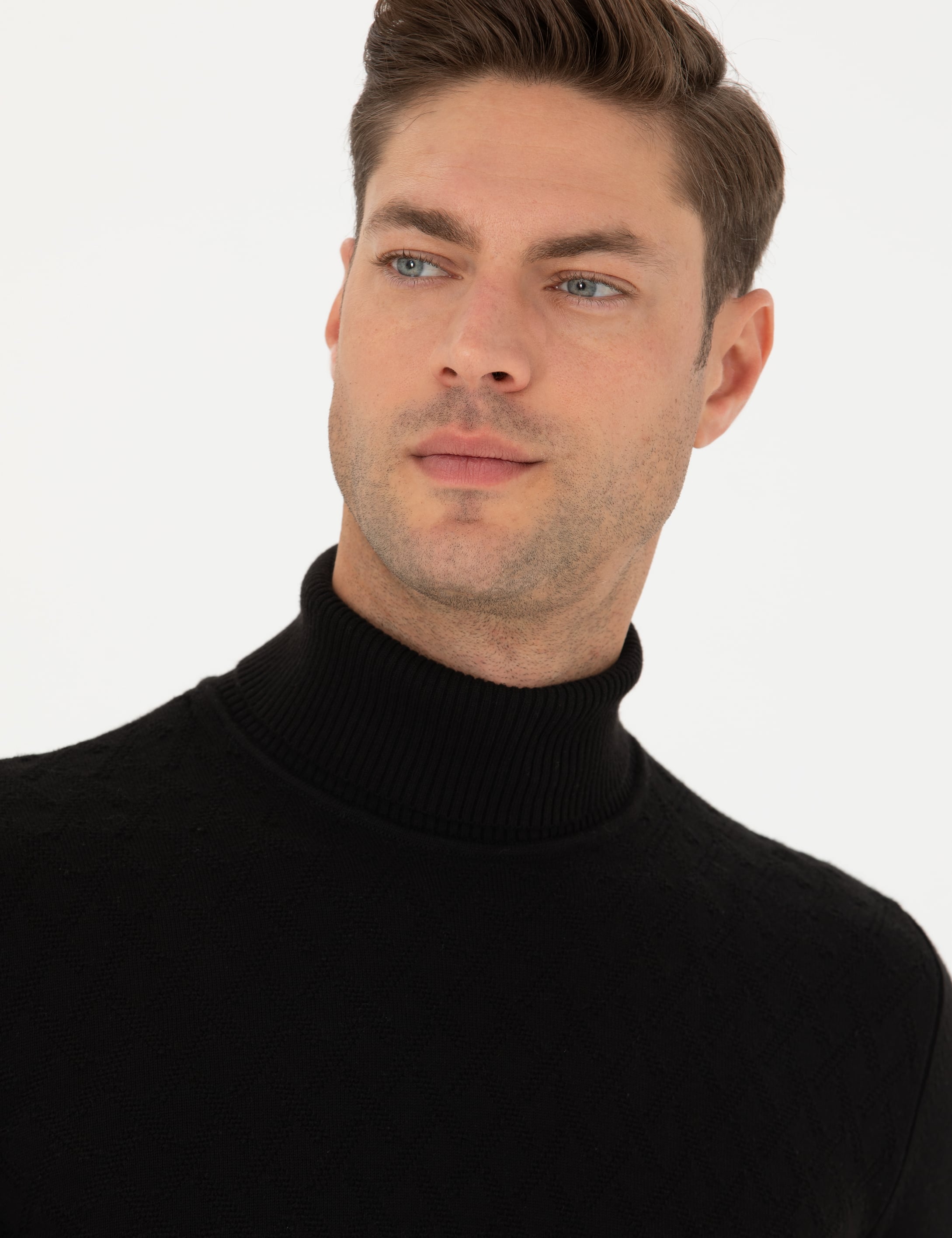 - Siyah Slim Fit Balıkçı Yaka Triko Kazak