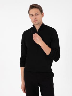 - Siyah Slim Fit Fermuarlı Dik Yaka Triko Kazak