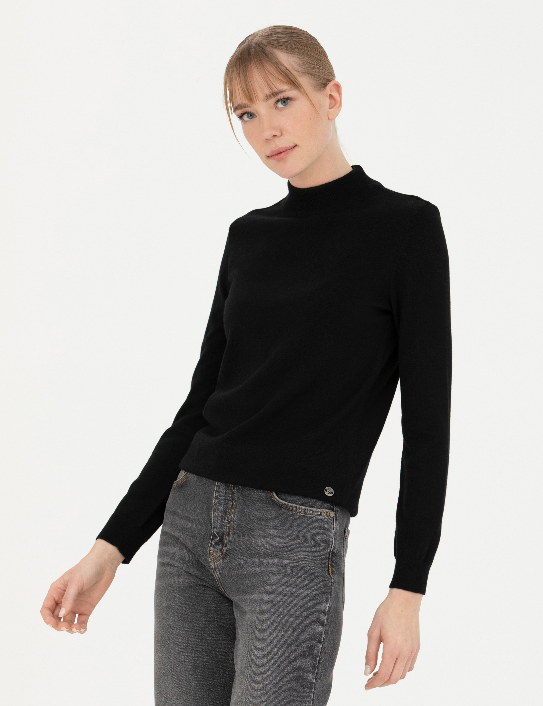 - Siyah Slim Fit Yarım Balıkçı Yaka Kazak