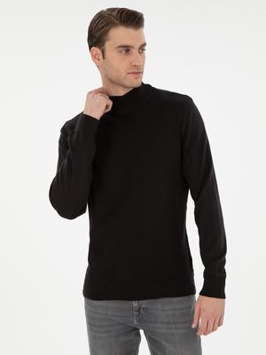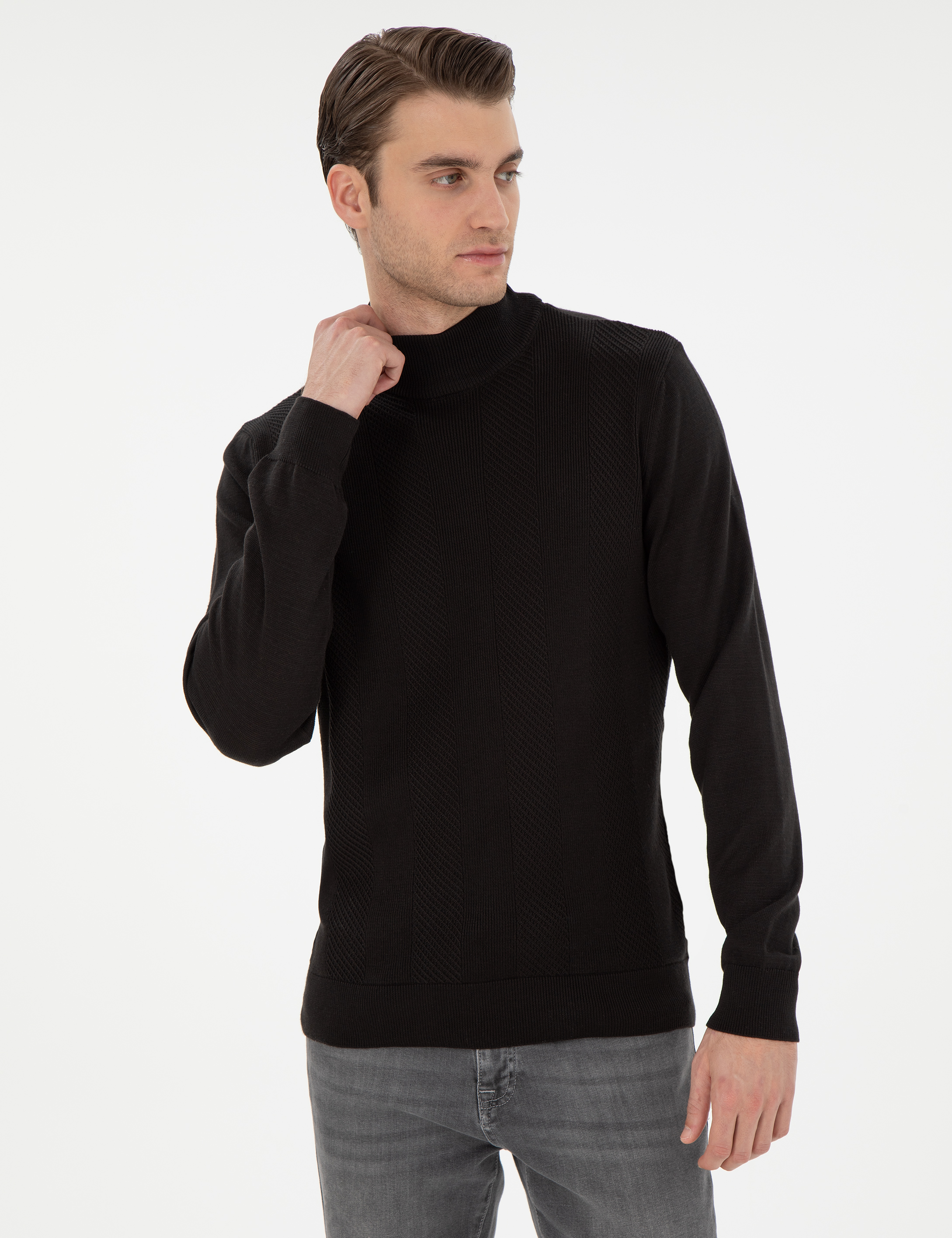 Siyah Slim Fit Yarım Balıkçı Triko Kazak