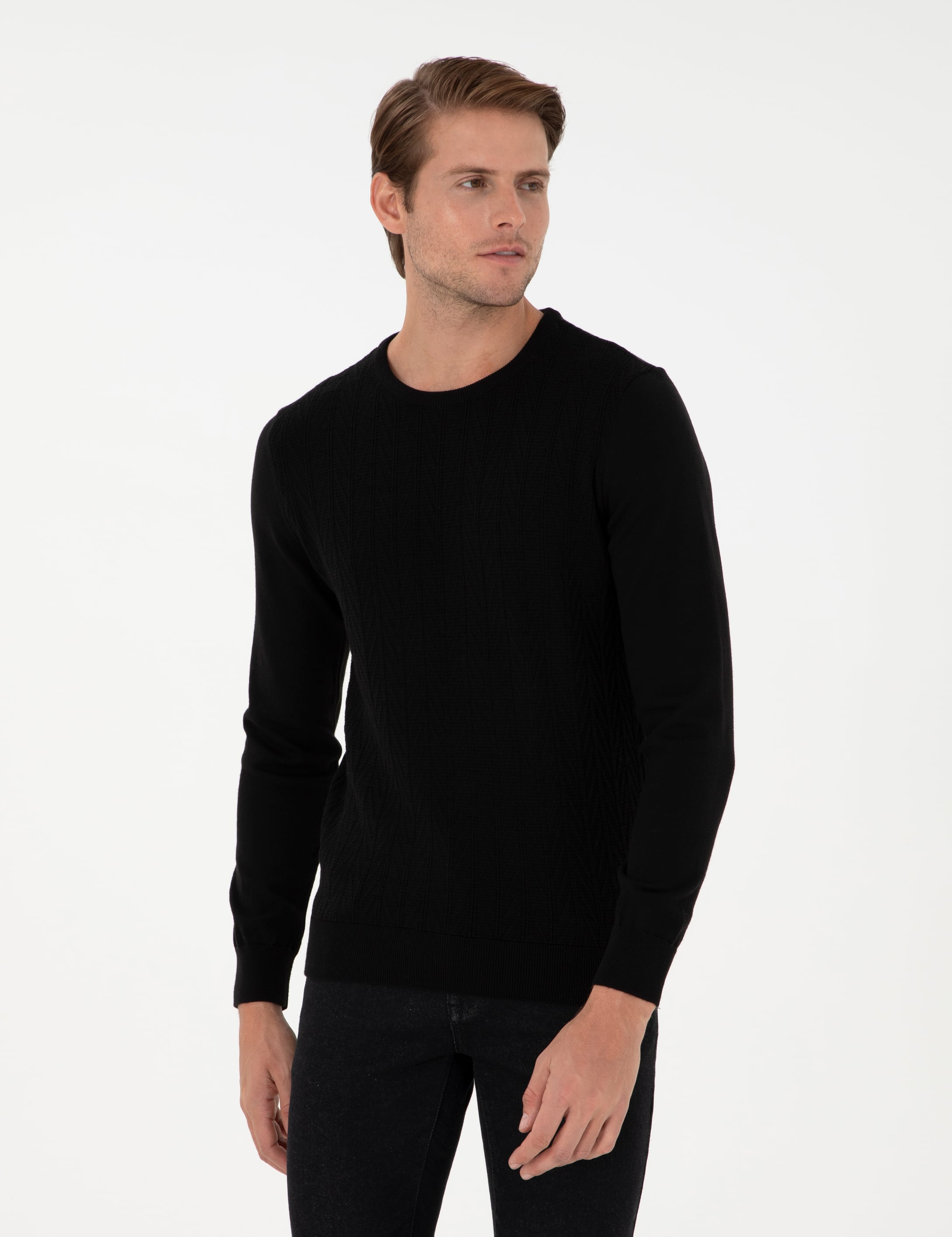 - Siyah Slim Fit Bisiklet Yaka Triko Kazak