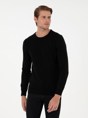 Siyah Slim Fit Bisiklet Yaka Triko Kazak