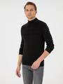 Siyah Slim Fit Yarım Balıkçı Yaka Triko Kazak