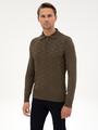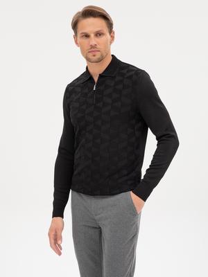 - Siyah Slim Fit Polo Yaka Fermuarlı Triko Kazak