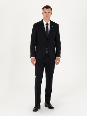 Siyah Slim Fit Yün Karışımlı Takım Elbise