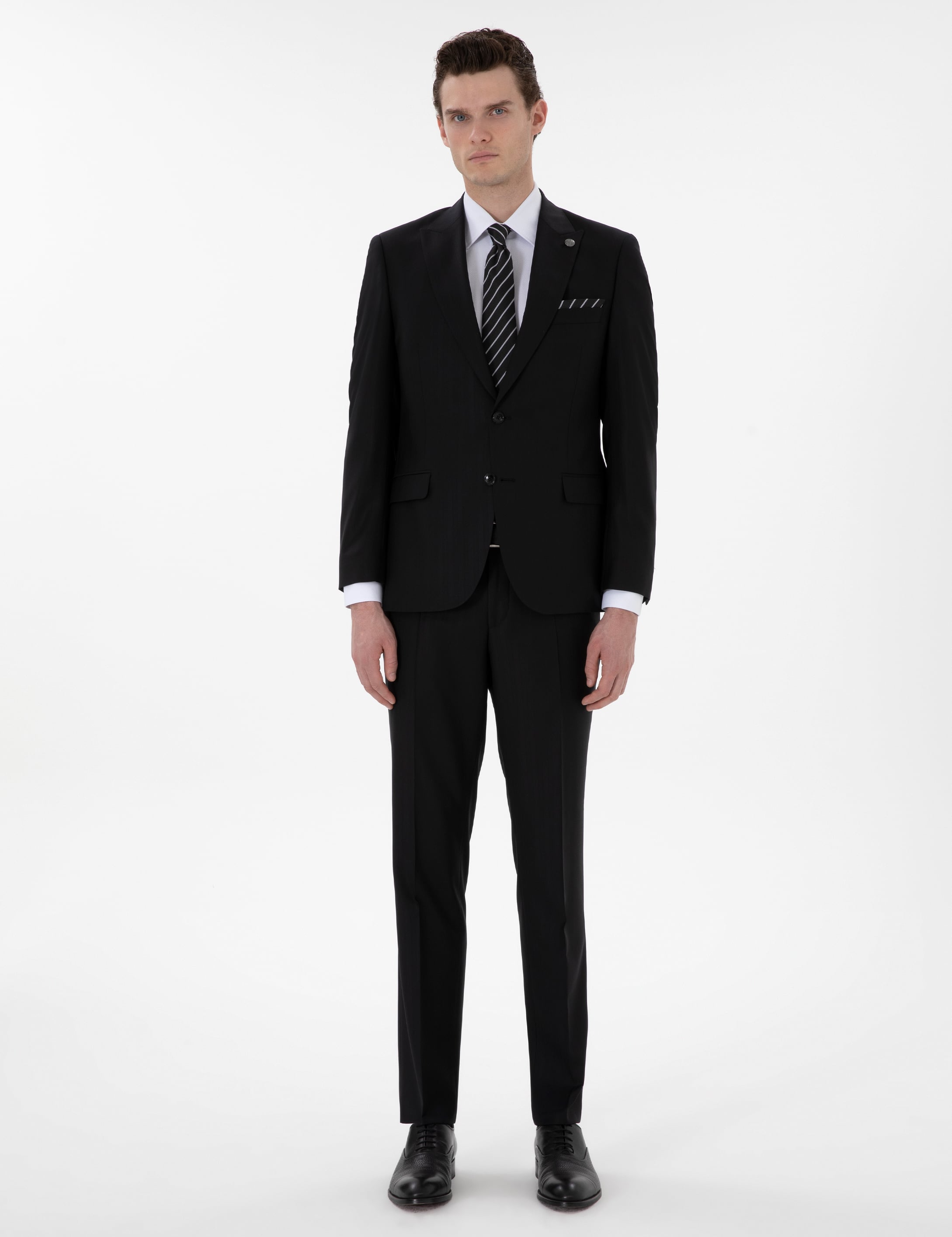 - Siyah Slim Fit Çizgili Yün Takım Elbise