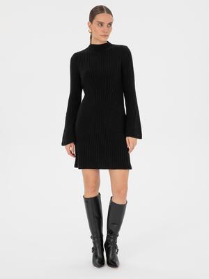 Siyah Slim Fit Triko Elbise