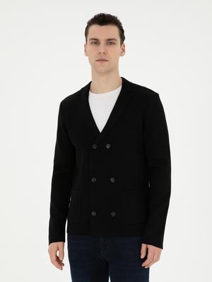 - Siyah Slim Fit Yün Karışımlı Düğmeli Triko Hırka