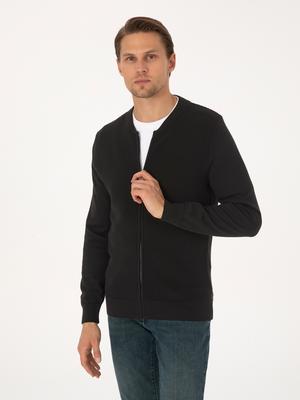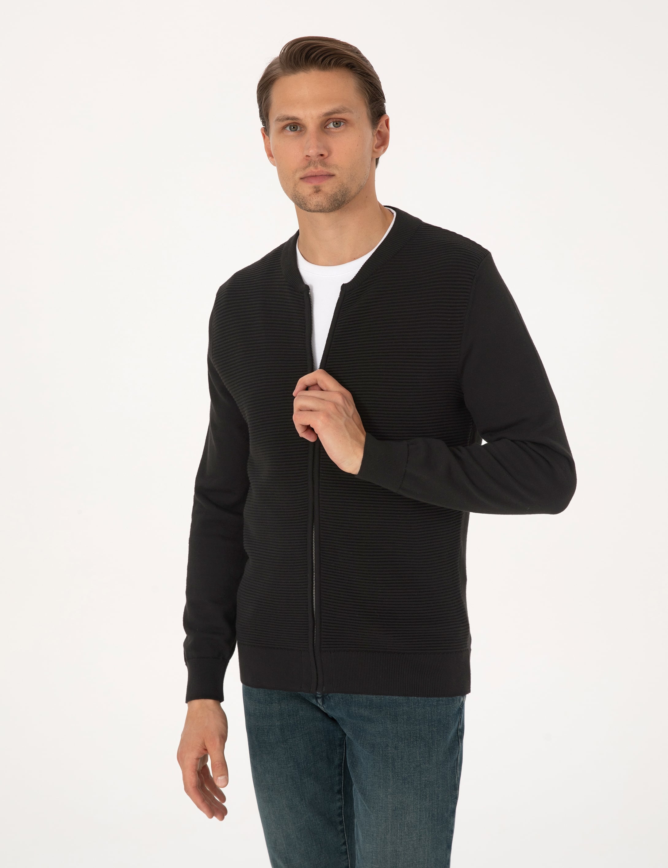 Siyah Slim Fit Fermuarlı Triko Hırka