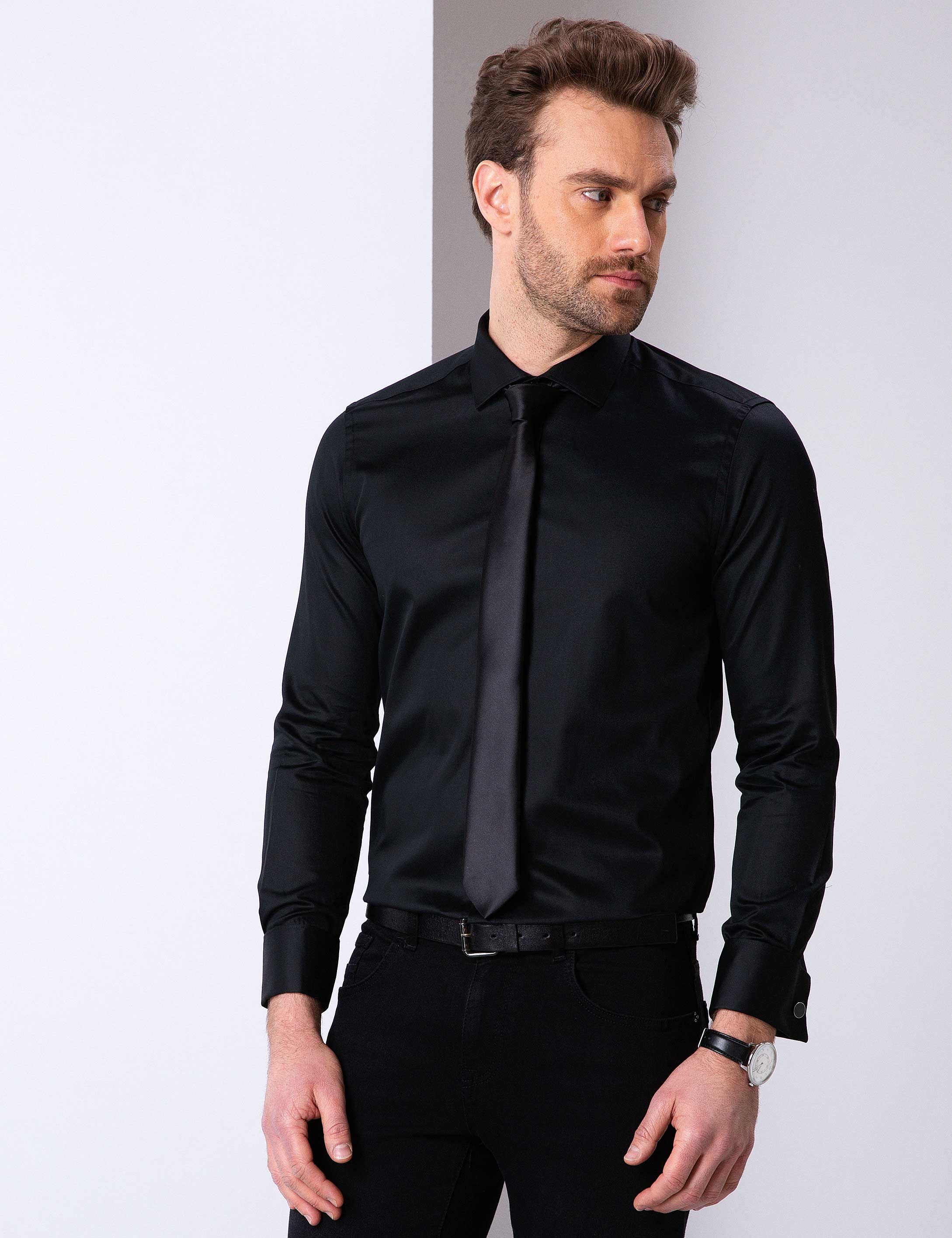 - Siyah Slim Fit Uzun Kollu Basic Gömlek