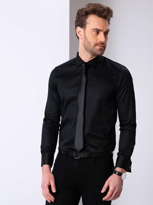 Siyah Slim Fit Uzun Kollu Basic Gömlek