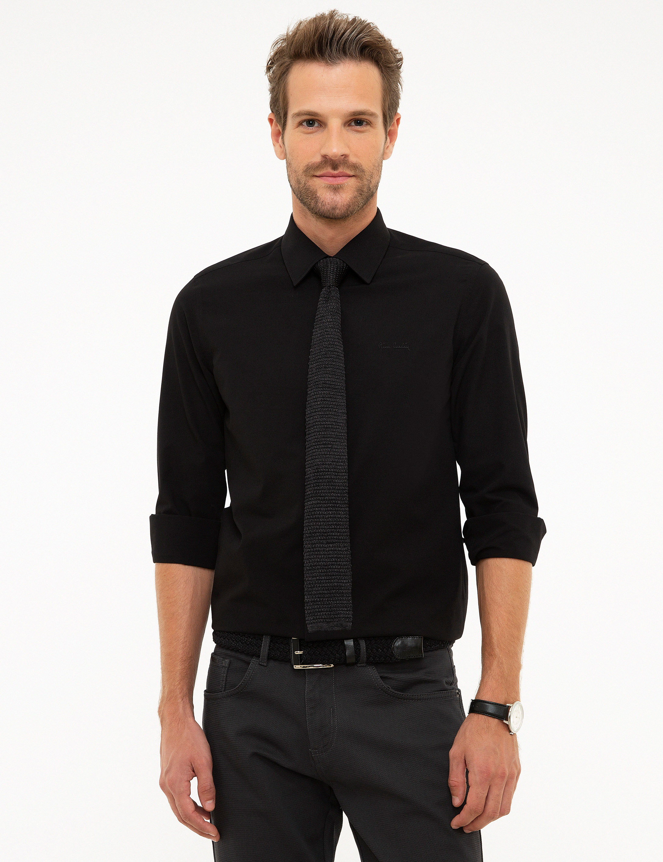 Siyah Slim Fit Uzun Kollu Basic Gömlek