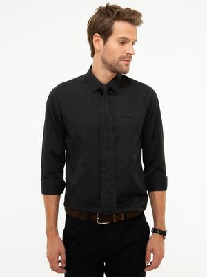 Siyah Slim Fit Uzun Kollu Basic Gömlek