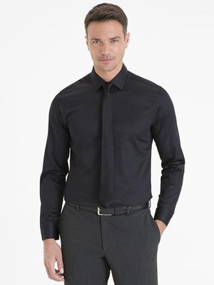 Siyah Slim Fit Uzun Kollu Basic Gömlek