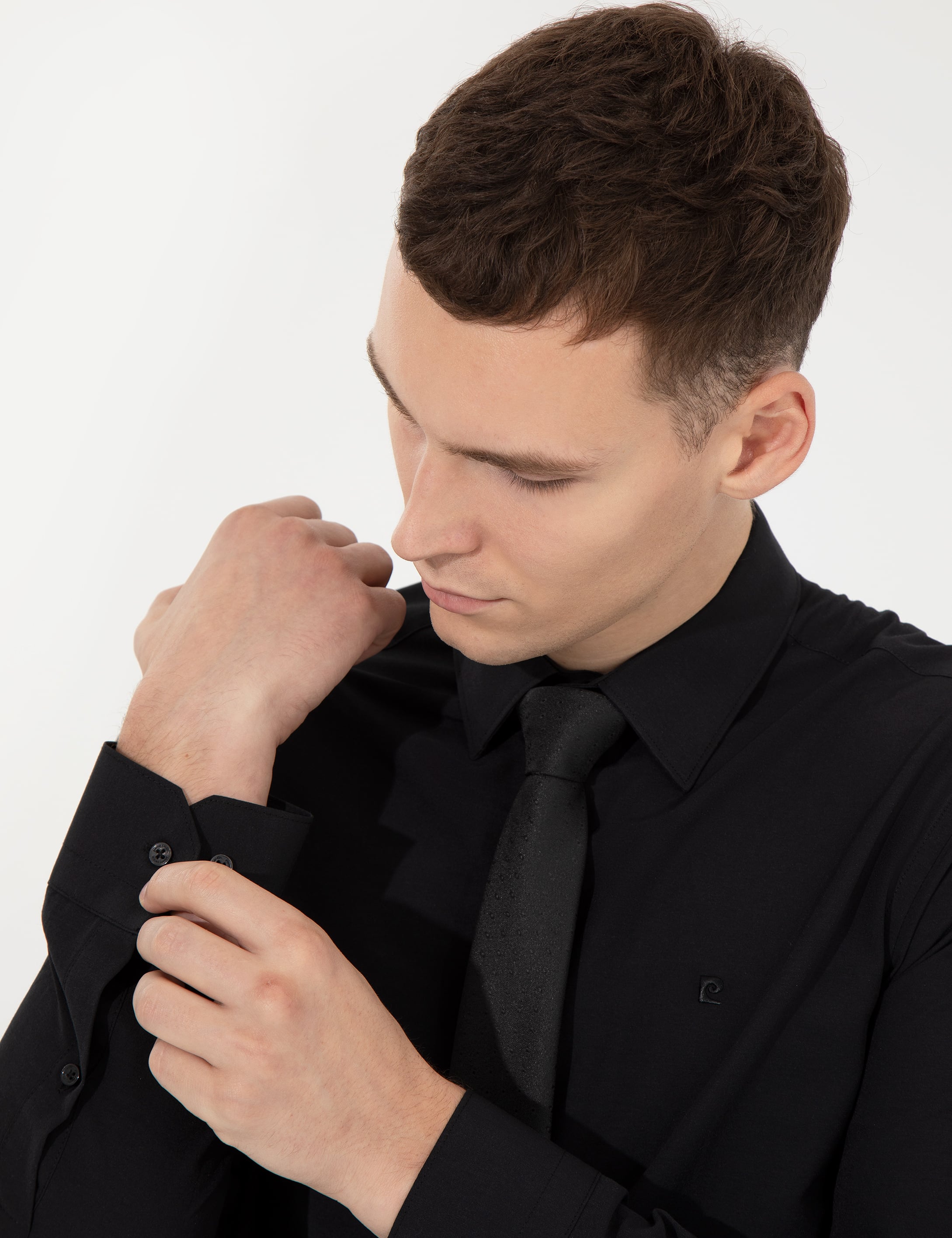 - Siyah Slim Fit Uzun Kollu Klasik Gömlek