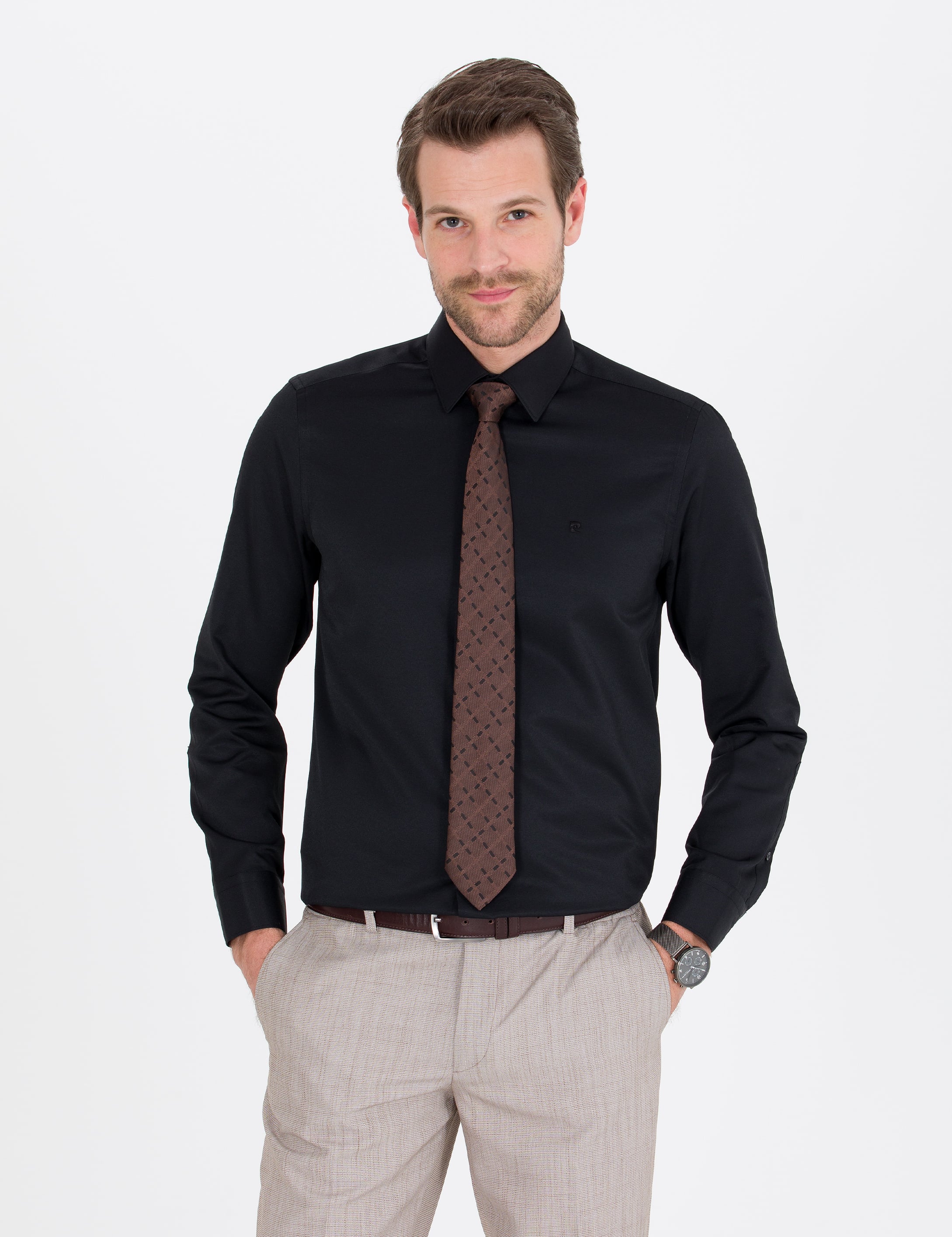 - Siyah Slim Fit Uzun Kollu Klasik Gömlek