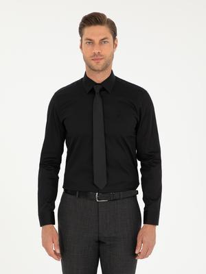 Siyah Parlak Saten Slim Fit Uzun Kollu Basic Gömlek