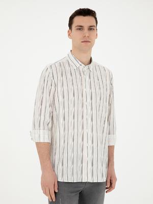 Modern şehir dinamiklerini zamansız parçaların etkileyici şıklığı ile birleştiren slim fit erkek gömlek modelimiz alttan britli yaka detayı sayesinde aksesuar kullanımını kolay hale getirir, bu sayede çok daha çarpıcı bir görünüme ola