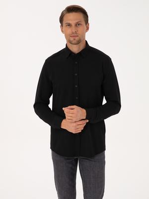 Siyah Esnek Slim Fit Çizgili Uzun Kollu Gömlek