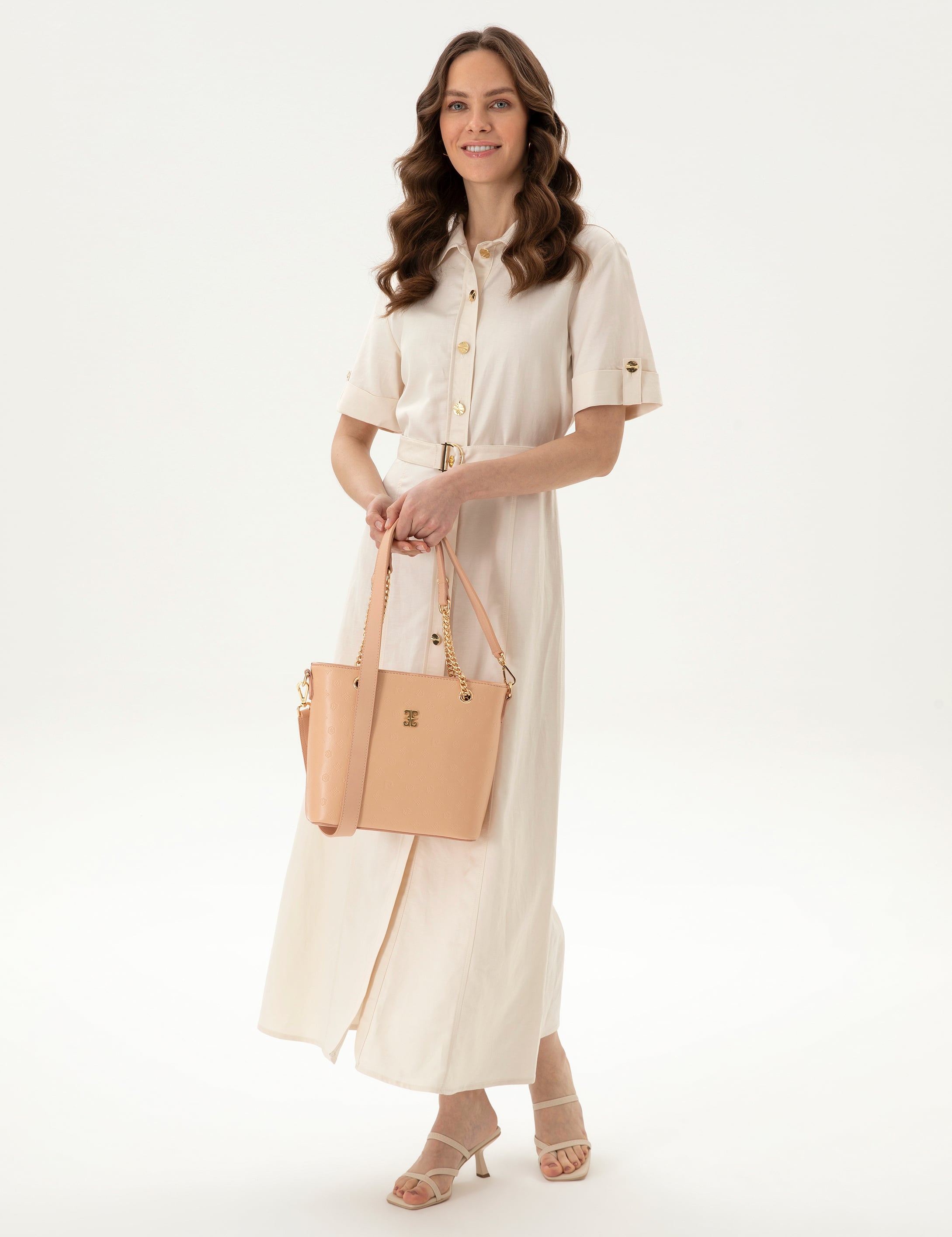 Çıkarılabilir uzun omuz askısı ve zincir detaylı omuz askısı mevcuttur.; Genişlik x Yükseklik x Derinlik: 29x22x11 cm'dir.; Fermuarlı kapama özelliğine sahiptir.; İçerisinde 1 adet fermuarlı iç cep bulunmaktadır.; Telefon vb. eşyaları koymak için 1 adet fermuarsız iç cep bulunmaktadır.; Çantanın içerisinde ortada ara fermuarlı bölme mevcuttur.; Suni deriden üretilmiştir.; Pierre Cardin yazılı özel saklama kılıfı çanta içerisinde mevcuttur.; 2 yıl garantilidir.; Türkiye'de üretilmiştir.
