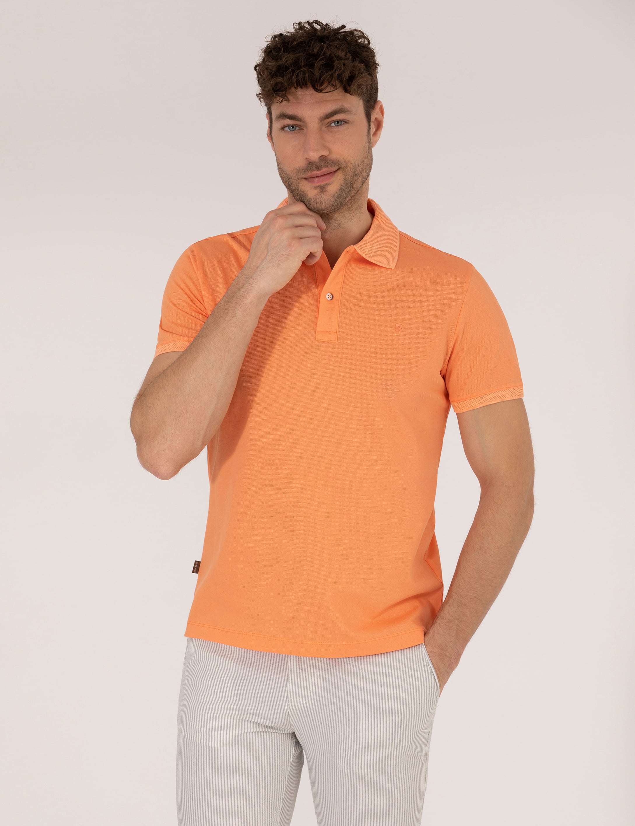 Açık Turuncu Slim Fit Polo Yaka Merserize Tişört