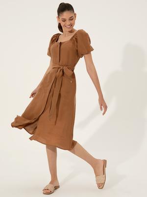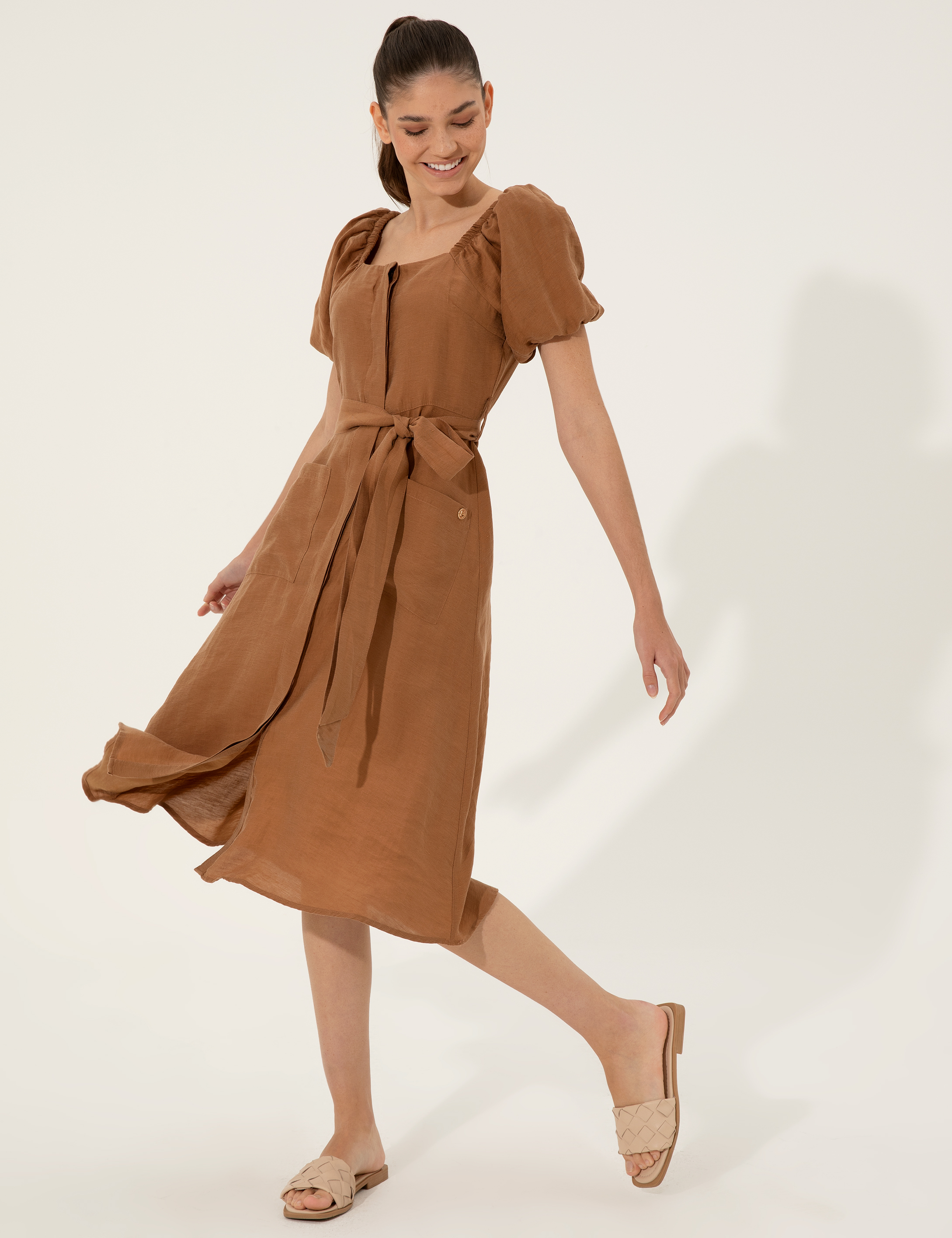 Kalite standartlarını her zaman olduğu gibi üst seviyede tutan elbise modelimiz keten kumaştan gelen sıcaklara karşı dayanıklılık sayesinde bunaltıcı sıcaklarda bile
