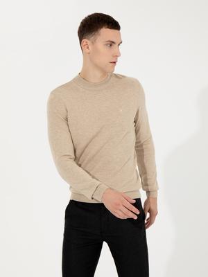 Taş Melanj Slim Fit Çeyrek Yaka Basic Triko Kazak