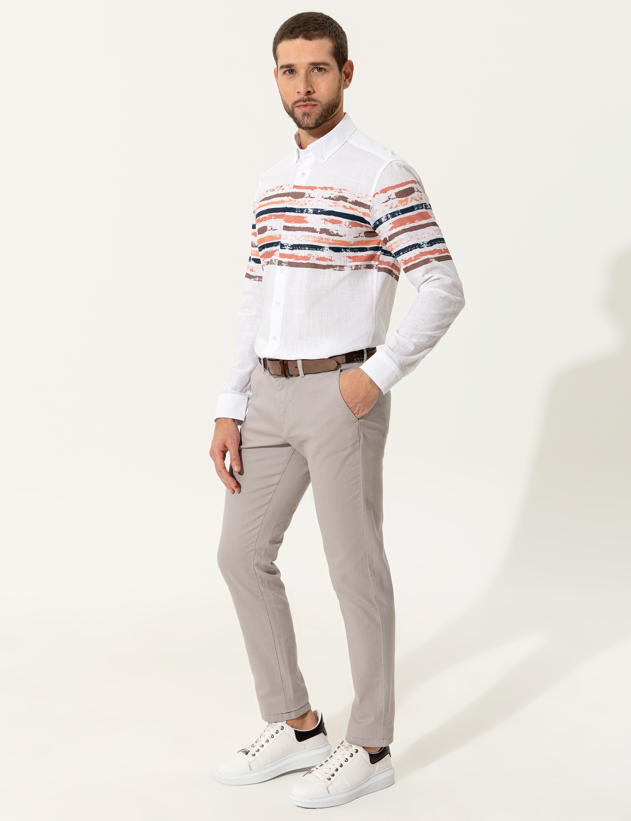 Görünümünüzü şık detaylarla zenginleştiren ve aynı zamanda benzersiz bir konfor hissi sunan erkek chino pantolon deneyimine hazır olun! Modern bir etki için armür detaylara başvurduğumuz yeni sezon tasarımlarımızdan pamuk karışımlı erkek chino pantolon modelimiz esnek kumaş yapısı sayesinde hareket alanınızı genişletir. Kombininizi oluşturan diğer parçalarla şahane bir uyum yakalayan slim fit erkek chino pantolonumuz formda görünmek isteyenleri oldukça mutlu eder.