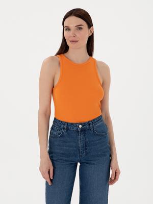 Turuncu Slim Fit tişört, modern ve sade tasarımıyla dikkat çekiyor. Bisiklet yaka ve kolsuz yapısı ile hem günlük kullanıma hem de spor aktivitelerine uyum sağlıyor. Tişörtün hafif ve esnek dokusu, hareket özgürlüğü sunarken, dar kesimi sayesinde sportif bir görünüm vadediyor. Basic tasarımı, gardırobunuzun favorileri arasında yer alabilir. Kombin edilebilir oluşu, her mevsim kullanabileceğiniz çok yönlü bir parça haline getiriyor. Yüksek bel pantolonlarla şık, keten eteklerle ise rahat ve enerjik bir görünüm yakalayabilir, farklı aksesuarlarla her ortama kolayca uyum sağlayabilirsiniz. Göz alıcı ama yalın çizgileriyle bu bluz, sade şıklığın enerjik anahtarı olacak.