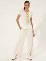 Görünüm bakımından yumuşak yapı ve parlak renkler sunan kadın pantolon modelimizin bilek taraflarında önde kalan mini yırtmaçlar bulunmaktadır.