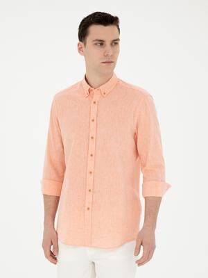 Turuncu Keten Karışımlı Regular Fit Uzun Kollu Gömlek