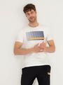 Turuncu Slim Fit Baskılı Bisiklet Yaka Tişört