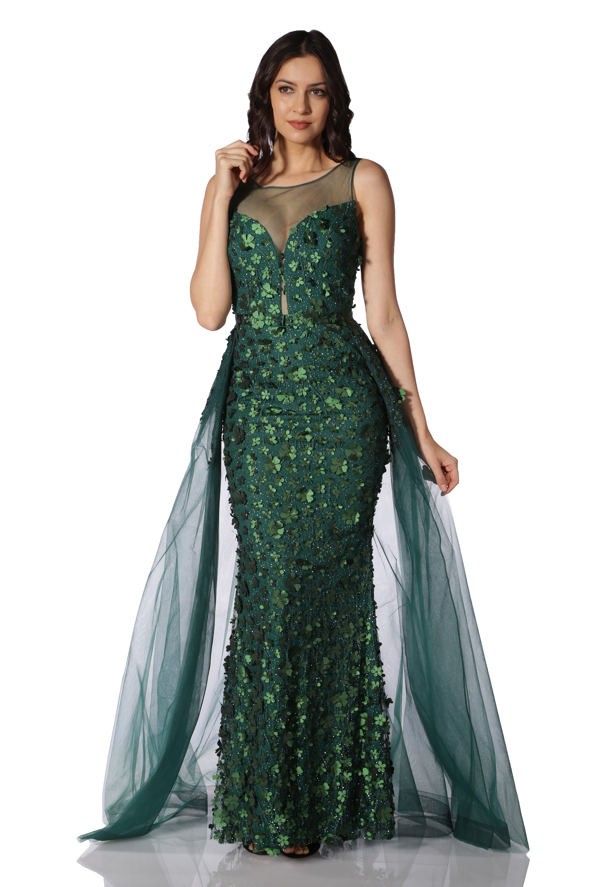 - Kol Boyu Uzun Abiye Elbise