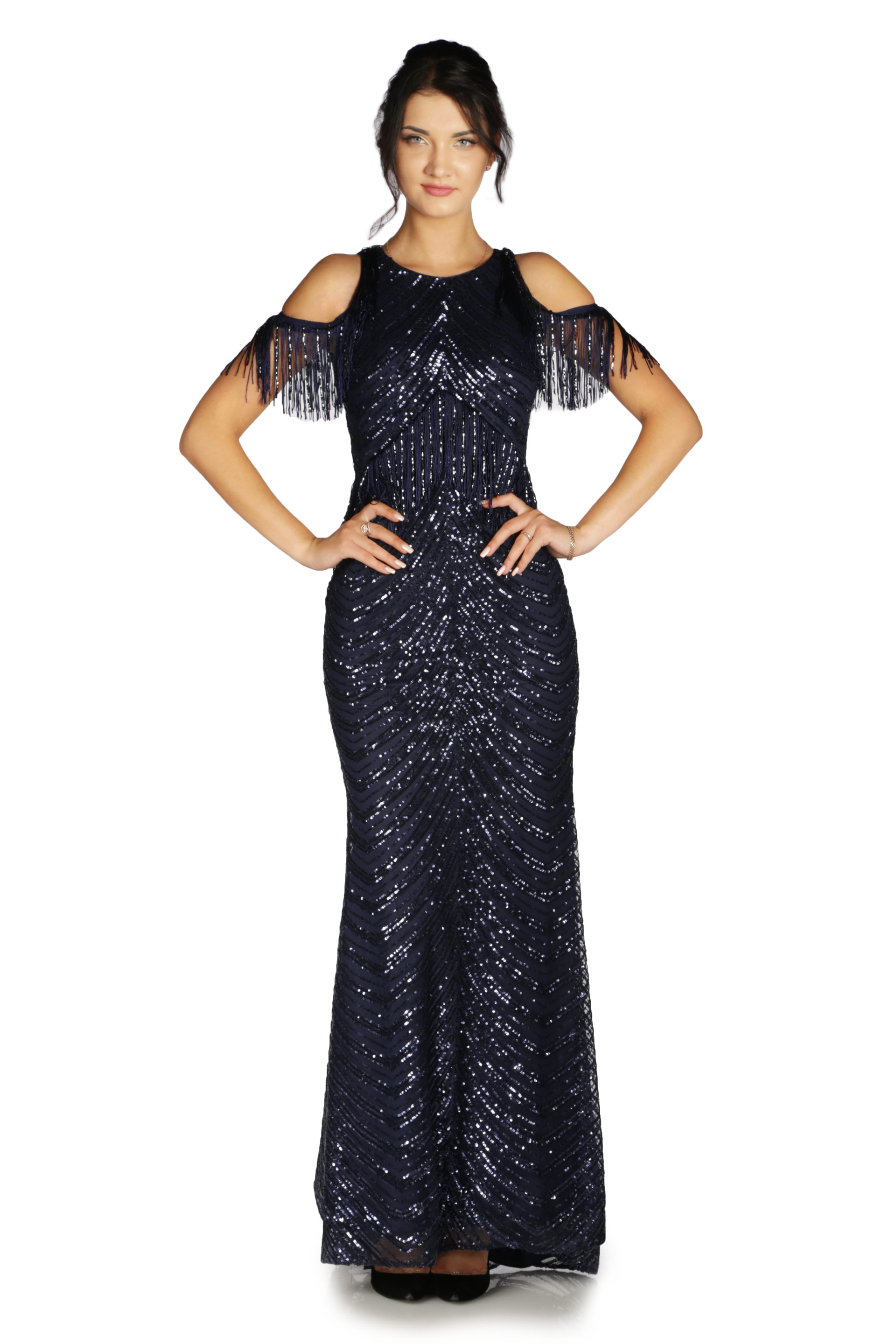 - Kol Boyu Uzun Abiye Elbise