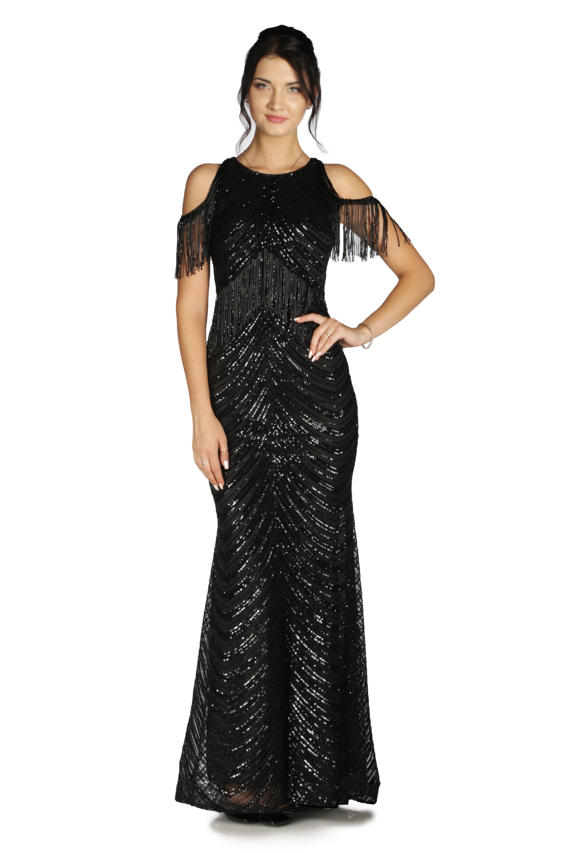 - Kol Boyu Uzun Abiye Elbise